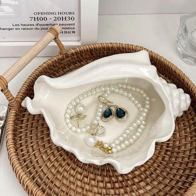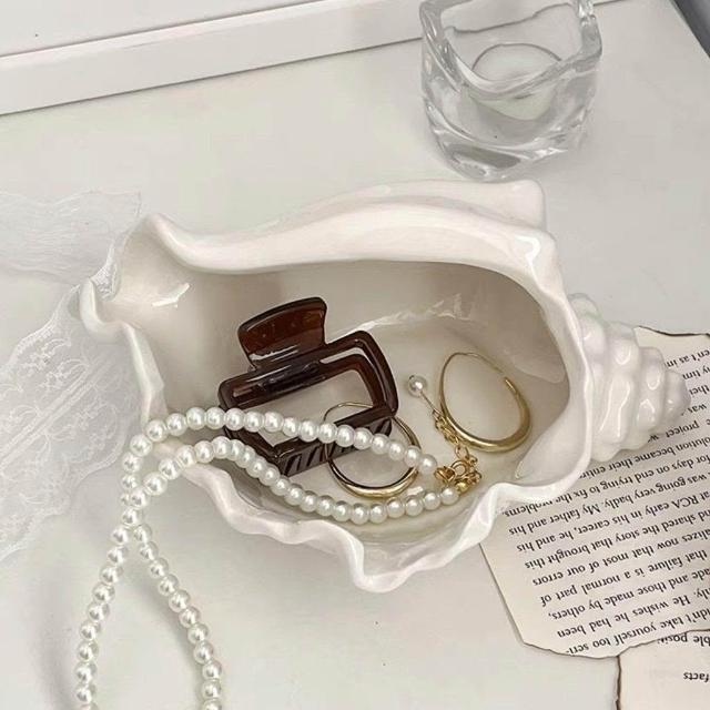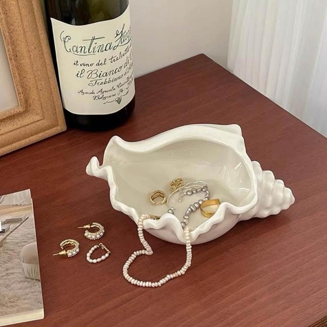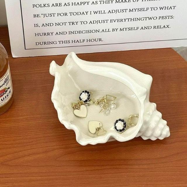 小衆ins風創意陶瓷貝殼首飾盒桌面飾品鑰匙收納玄關海螺托盤裝飾