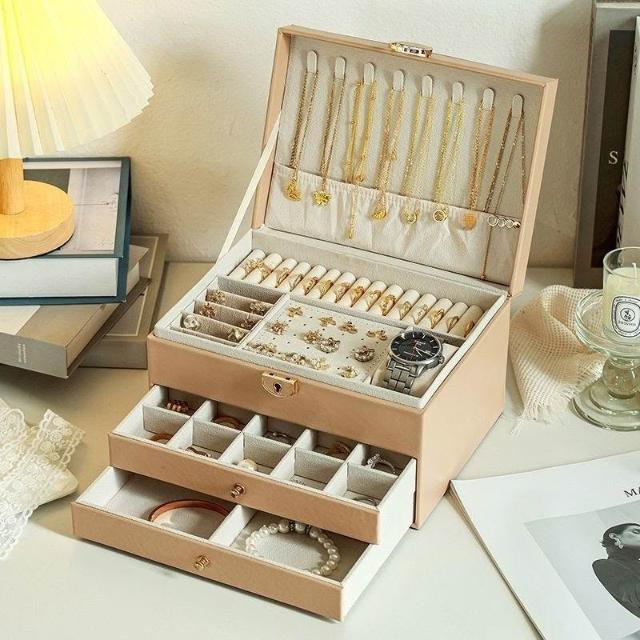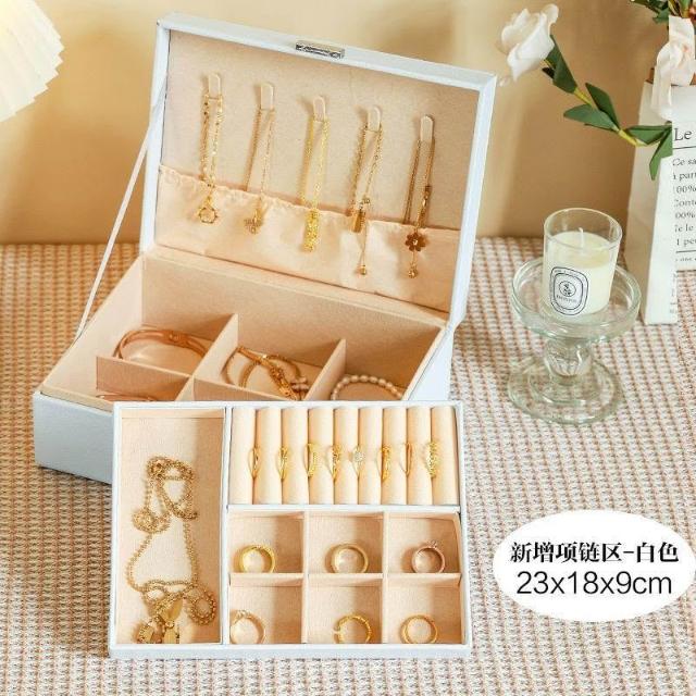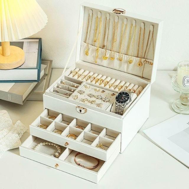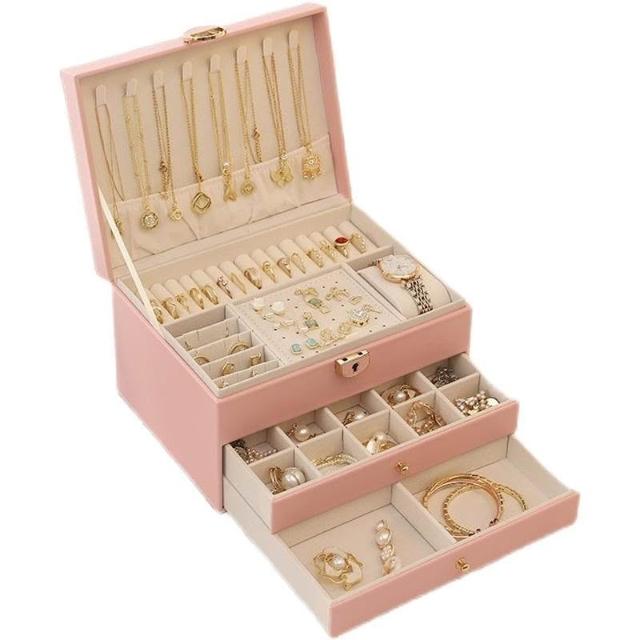 首飾收納盒大容量高檔新款精緻耳環耳釘帶鎖項鍊首飾盒飾品多層
