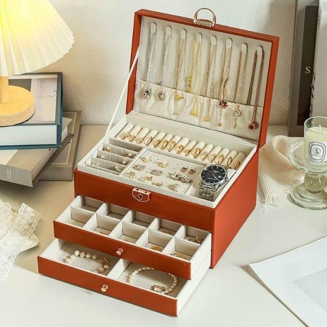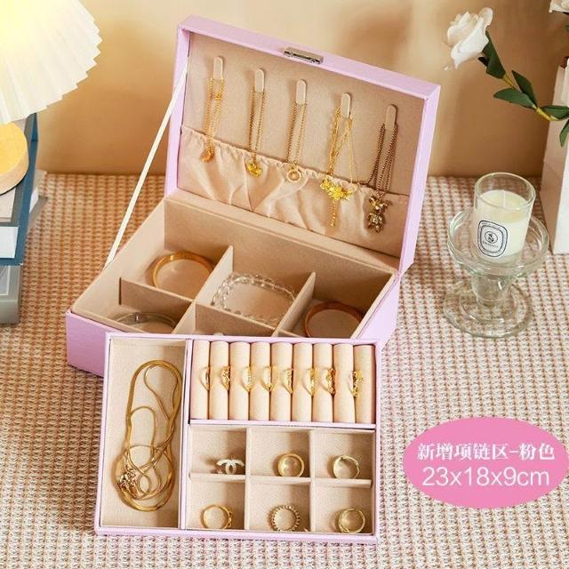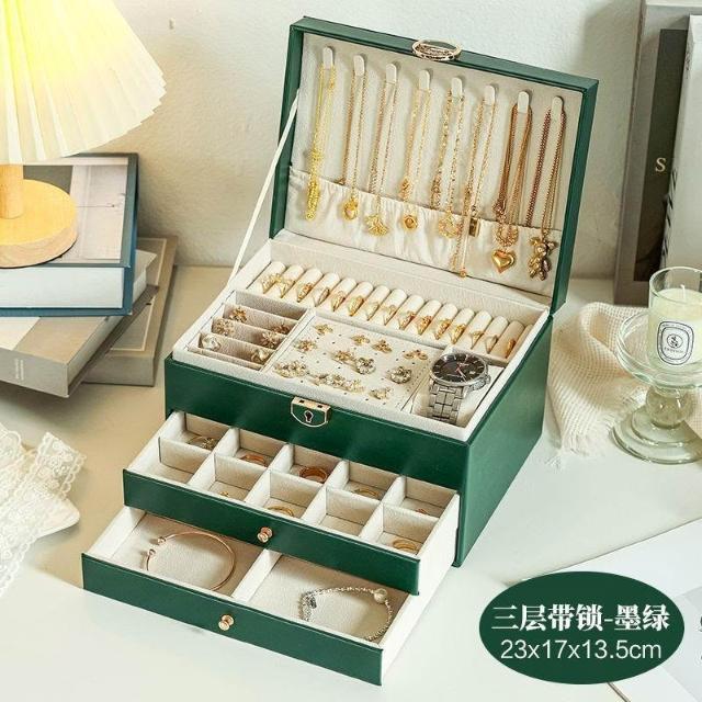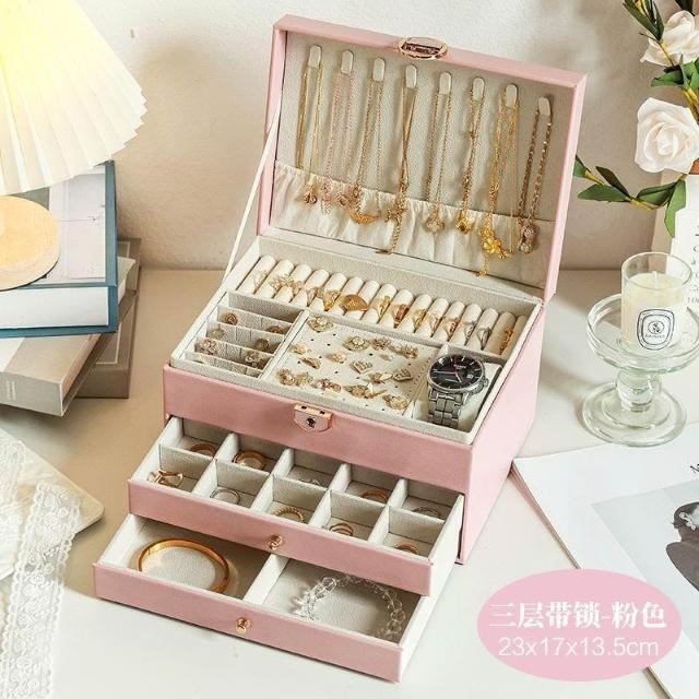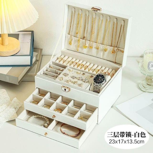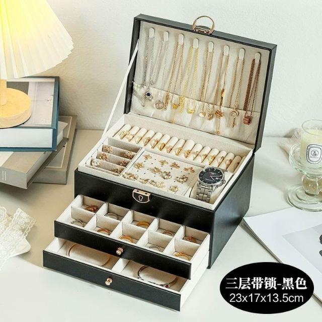 首飾收納盒大容量高檔新款精緻耳環耳釘帶鎖項鍊首飾盒飾品多層