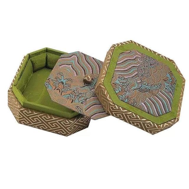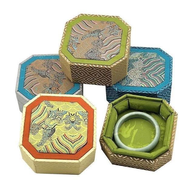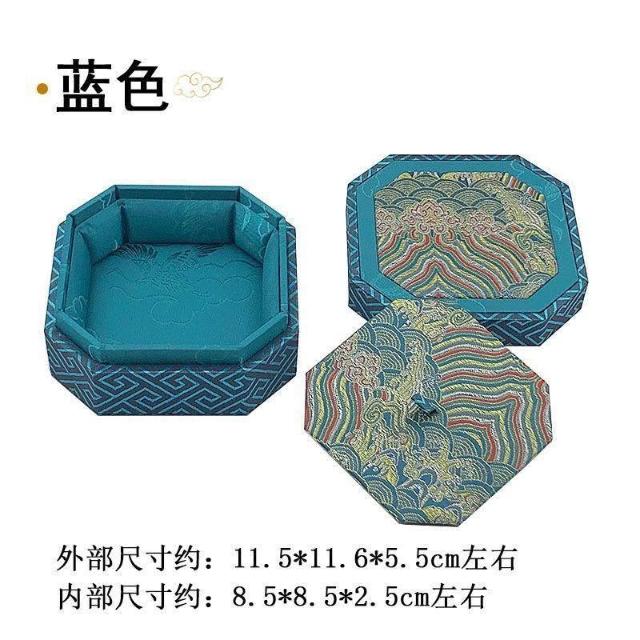 新款中國風綢緞八角首飾錦盒手串玉器文玩禮盒復古收納盒手鐲盒