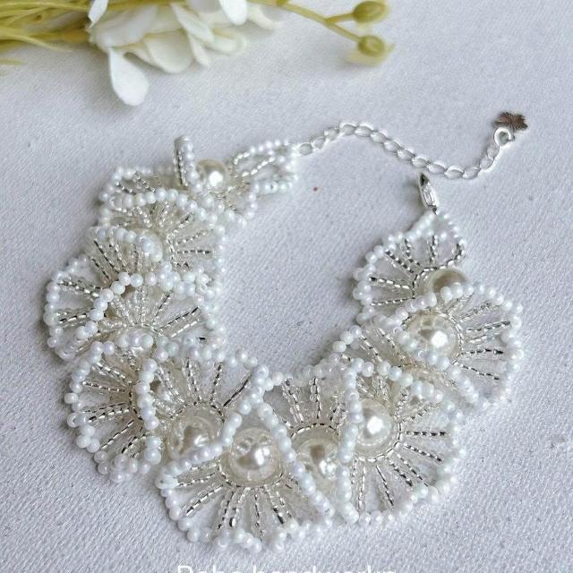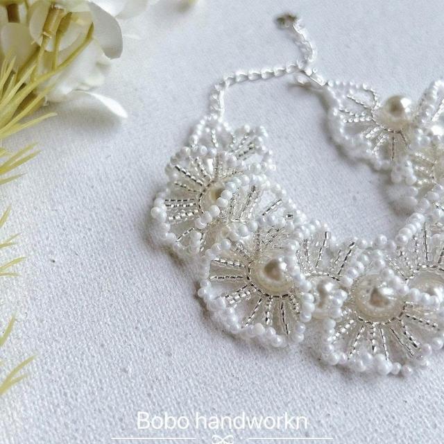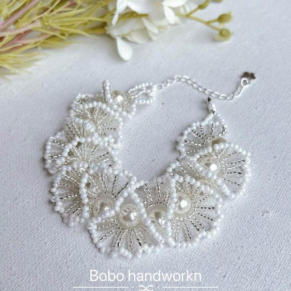 百搭甜美白色珍珠手鍊女施家珍珠蕾絲花邊洛麗塔項鍊lolita手鍊