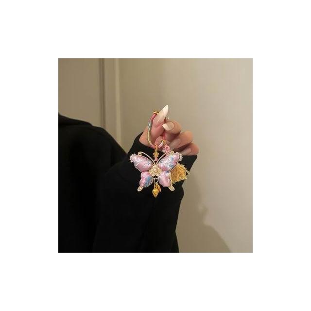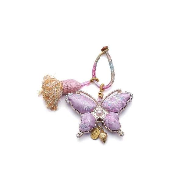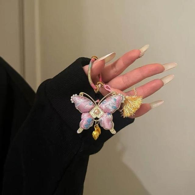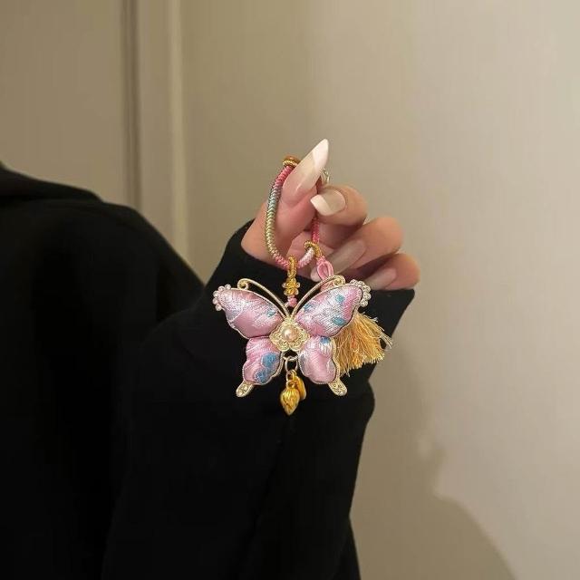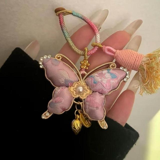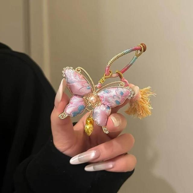 非遺宋錦招財蝴蝶手工掛飾新中式雙面刺繡流蘇吊墜鑰匙扣