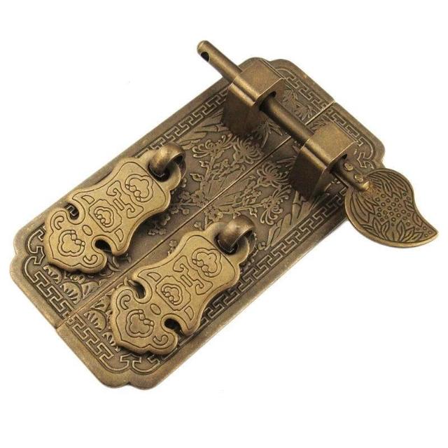 中式傢俱五金銅配件仿古純銅直條櫃門拉手衣櫃書櫃門鎖帶插銷拉手