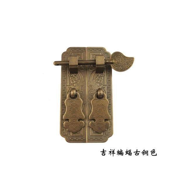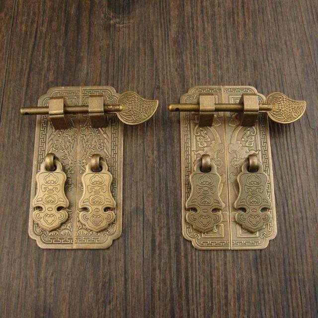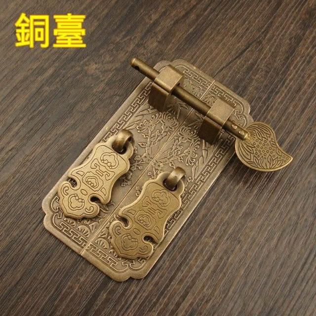 中式傢俱五金銅配件仿古純銅直條櫃門拉手衣櫃書櫃門鎖帶插銷拉手