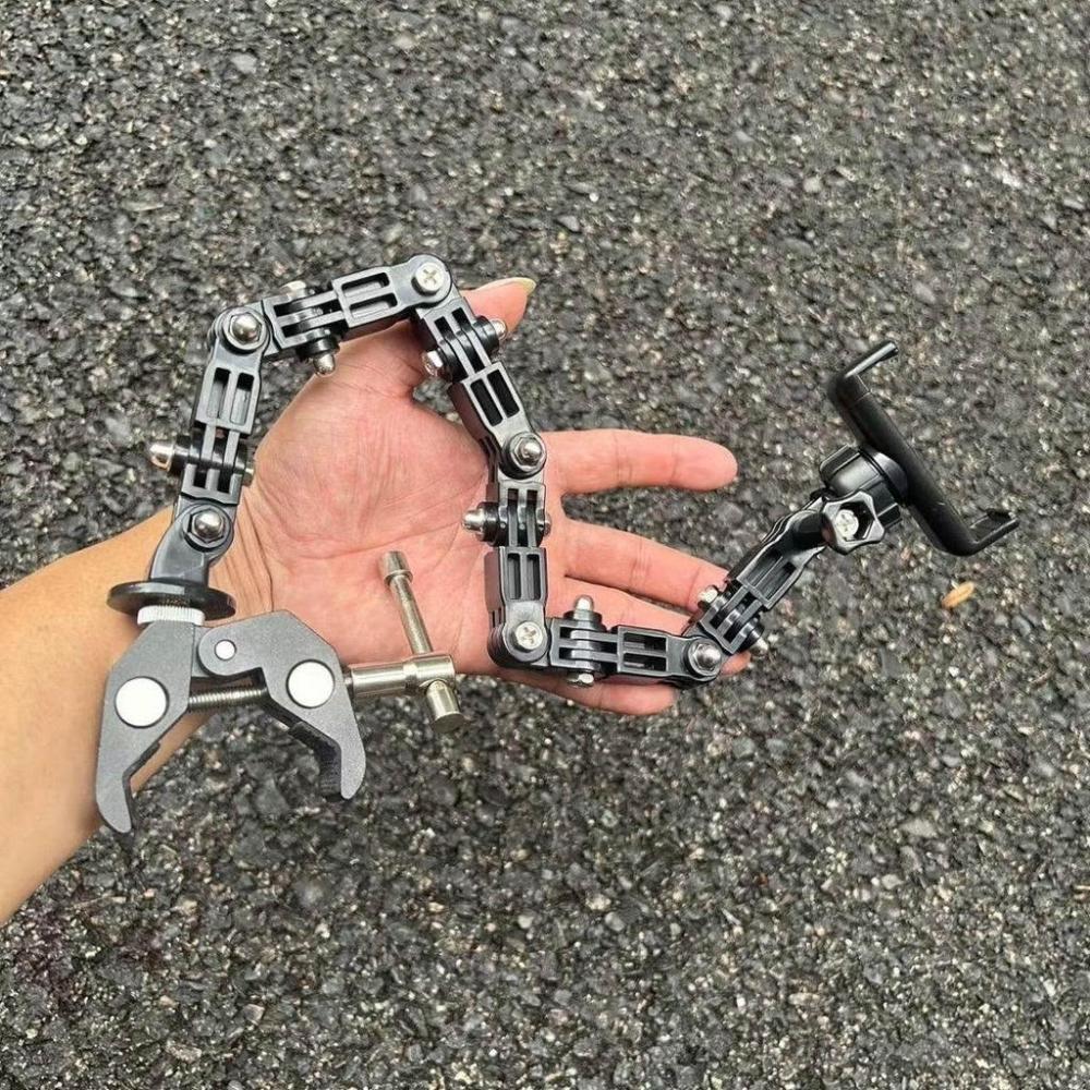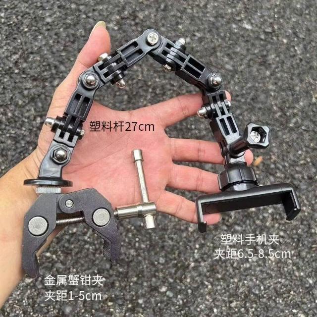 懶人牀頭支撐架金屬蟹鉗夾桌面手機支架手機夾百折杆拍攝支架摺疊
