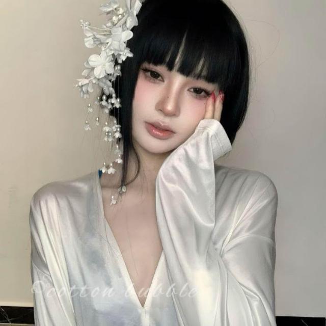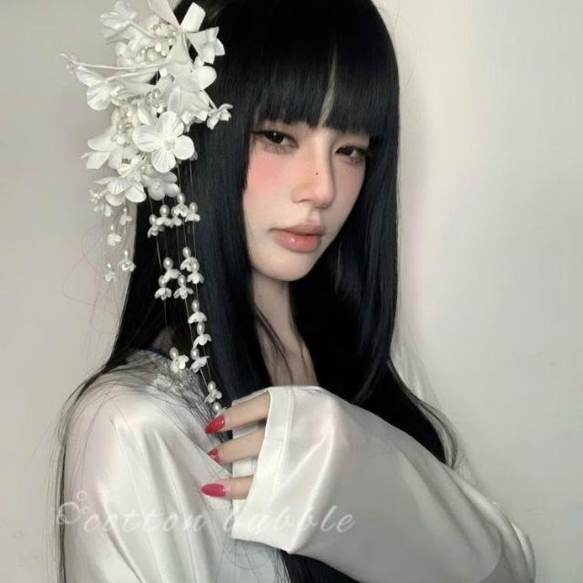 純欲風白色鈴蘭花髮夾頭飾新中式花朵配飾側邊夾髮卡新娘頭花髮飾