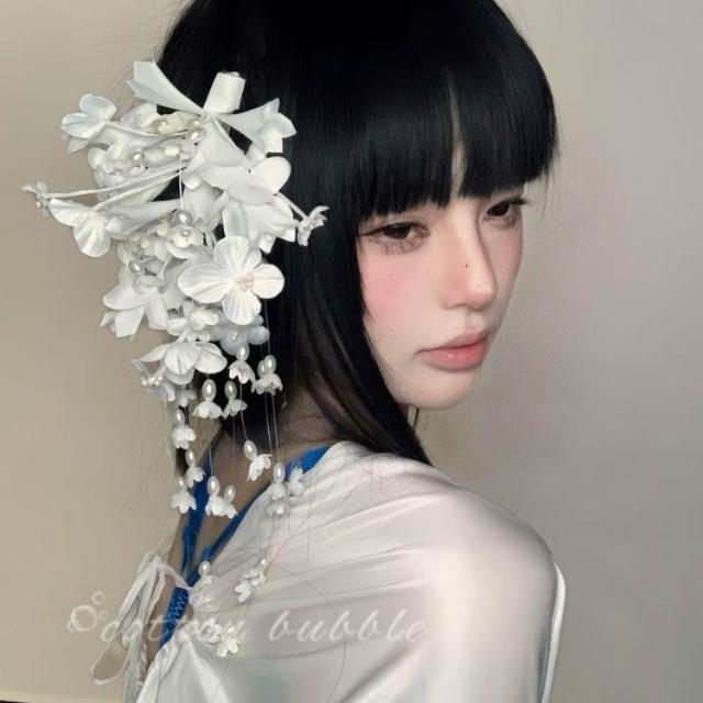 純欲風白色鈴蘭花髮夾頭飾新中式花朵配飾側邊夾髮卡新娘頭花髮飾