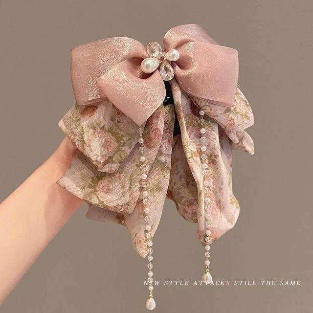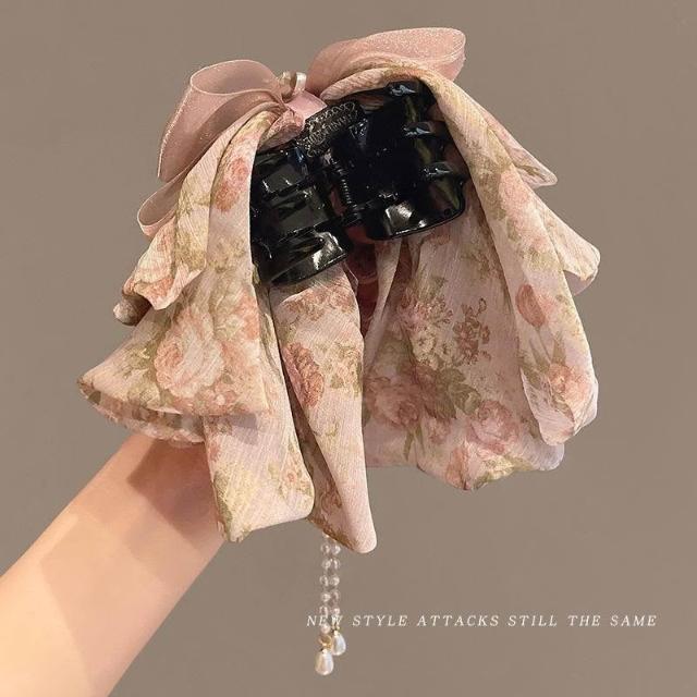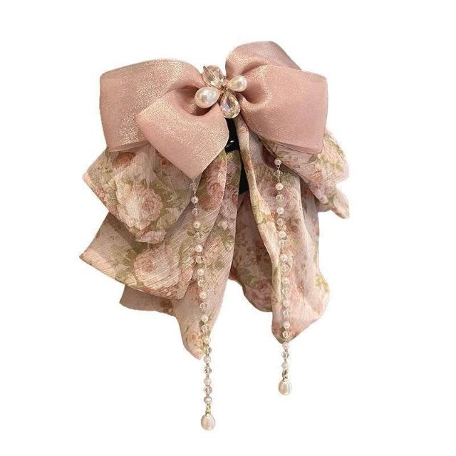2025新款碎花流蘇蝴蝶結髮夾後腦勺馬尾夾顯髮量抓夾半扎發頭飾女