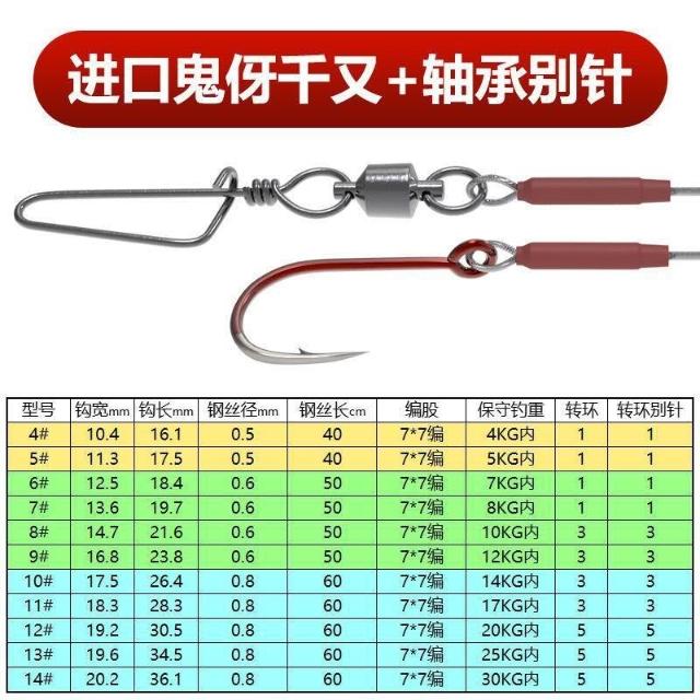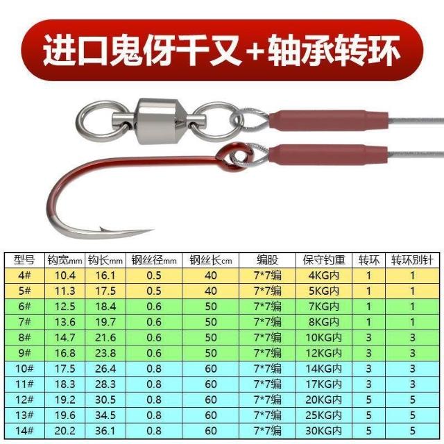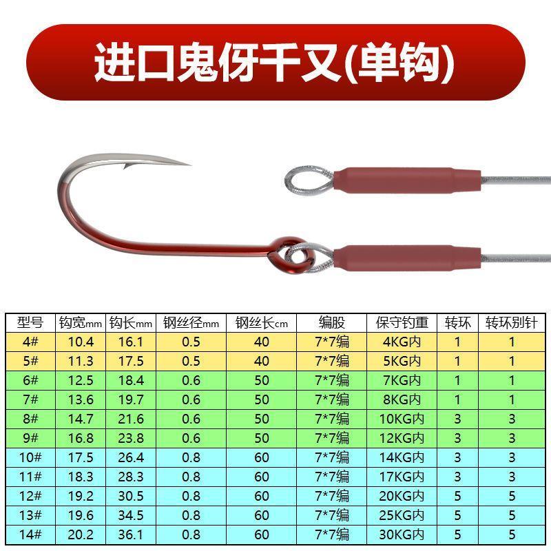 鯧魚鉤組海釣鋼絲鉤防咬紅鯧魚鉤綁好子線單鉤釣鱸魚專用鉤石斑鉤