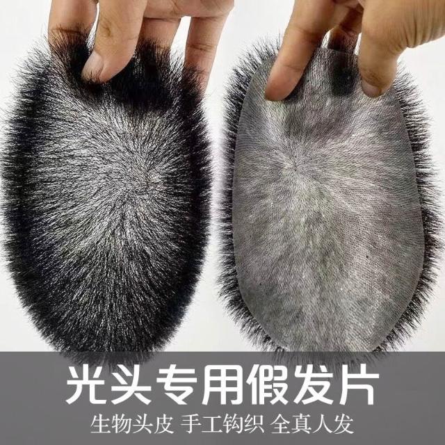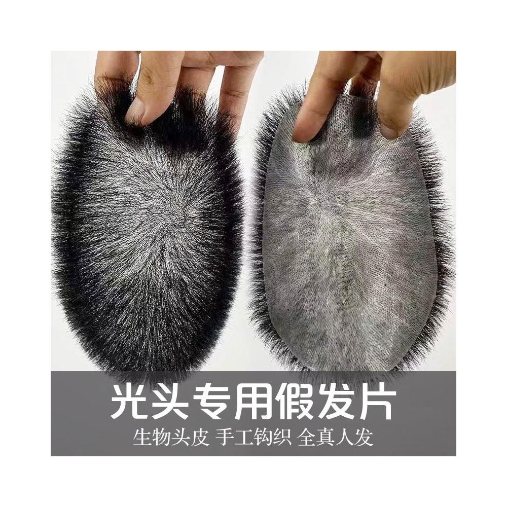 TEMU熱銷男士發塊生物頭皮補發塊光頭專用真發毛寸頭頂假發片