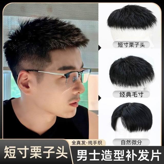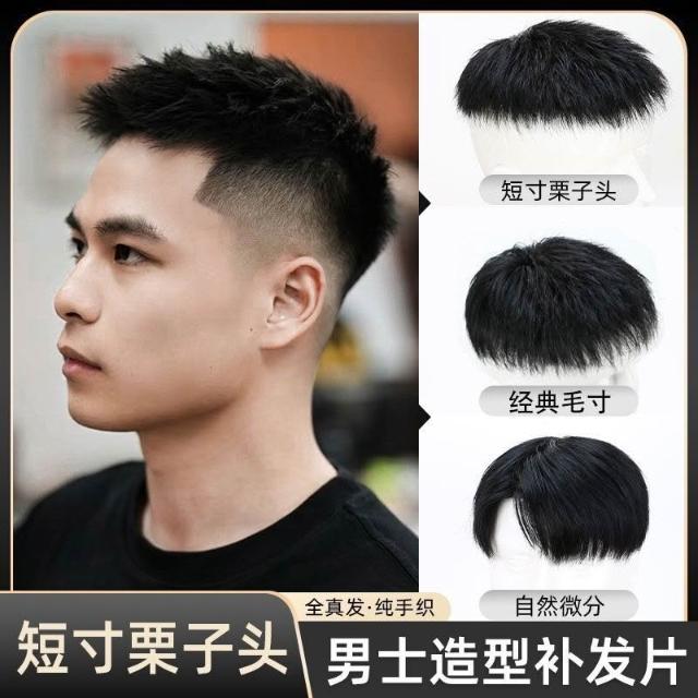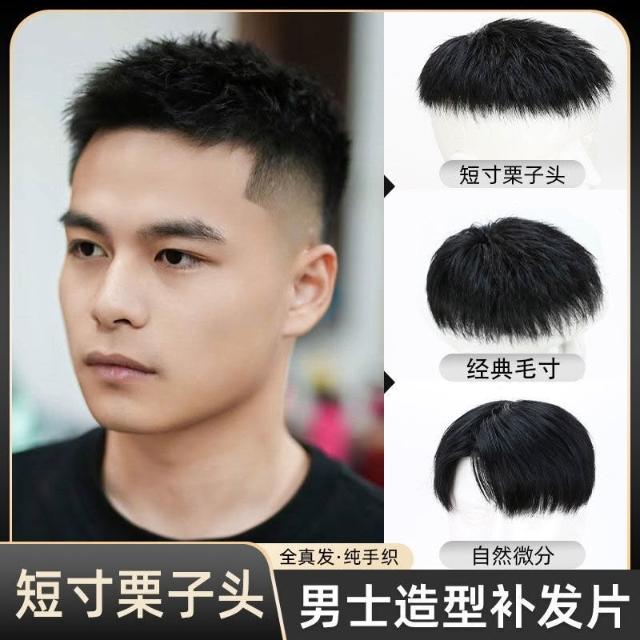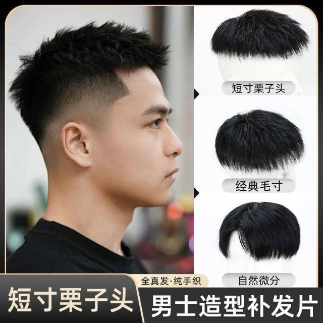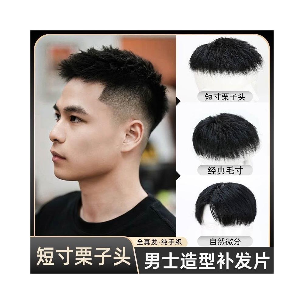 假發男士短發真發清爽短毛寸帥氣栗子頭男生頭頂地中海男款補發片