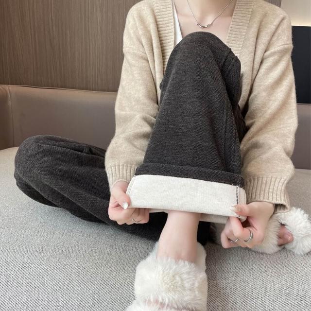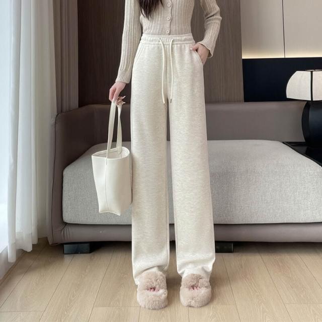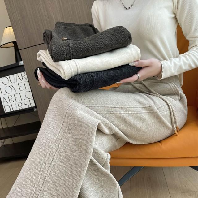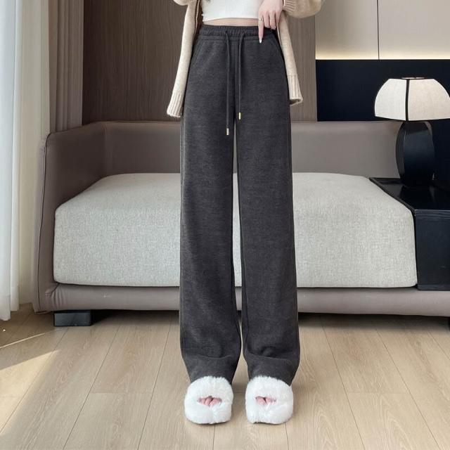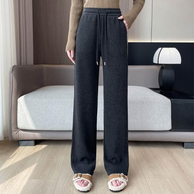免運 工廠直發 鄭州女褲醋酸羊毛褲闊腿直筒褲子女秋冬拖地寬松垂感休閑百搭女裝