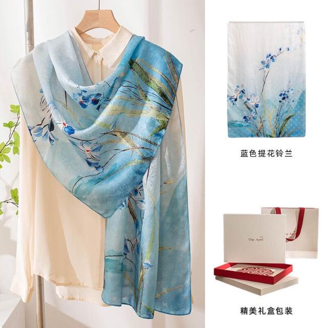 免運 廠家直供 絲巾長條高級感2025桑蠶絲印花披肩絲巾大尺寸杭州絲綢圍巾禮盒裝
