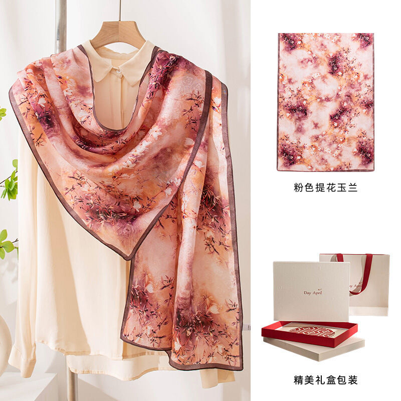 免運 廠家直供 絲巾長條高級感2025桑蠶絲印花披肩絲巾大尺寸杭州絲綢圍巾禮盒裝