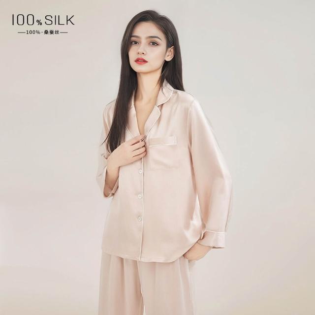 廠家直供 19姆米重磅真絲睡衣女2025秋冬長袖長褲100%桑蠶絲絲綢家居服套裝