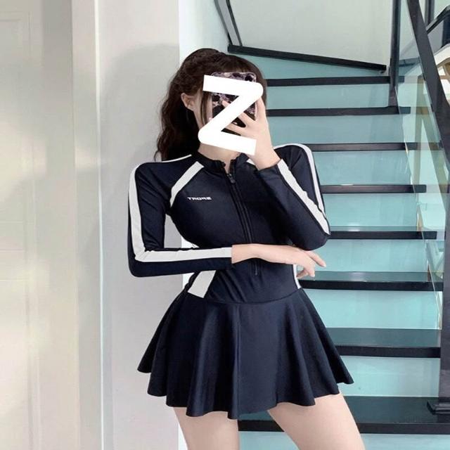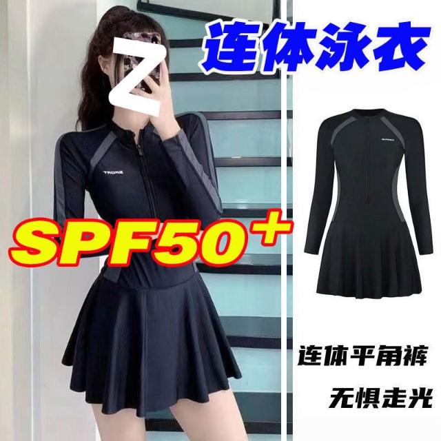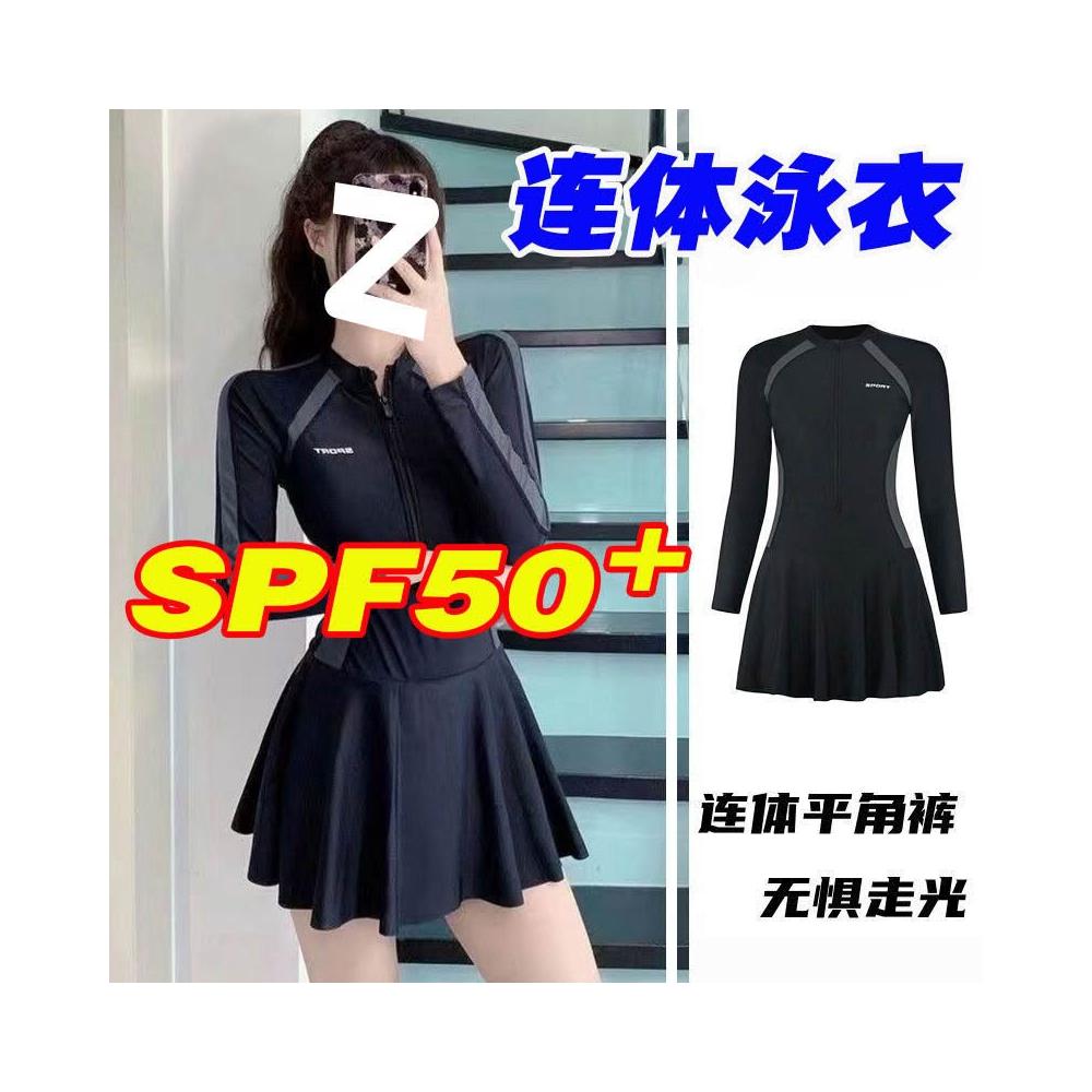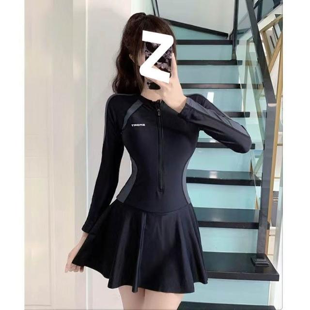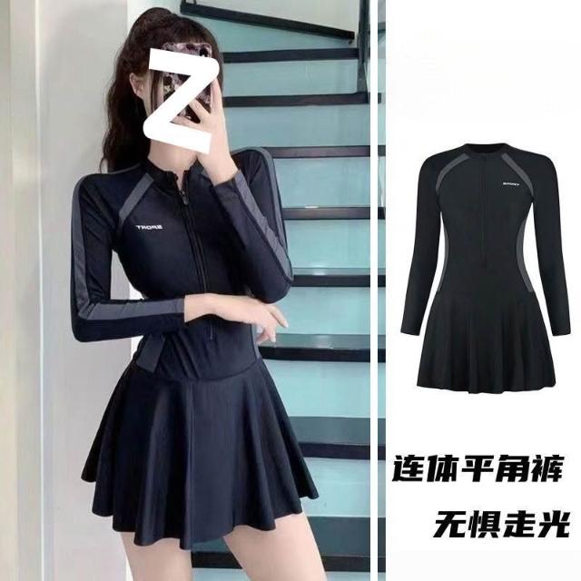 廠家直發 新款女裙式連體小清新女士遊泳衣保守顯瘦長袖款泡溫泉遊泳裝廠家