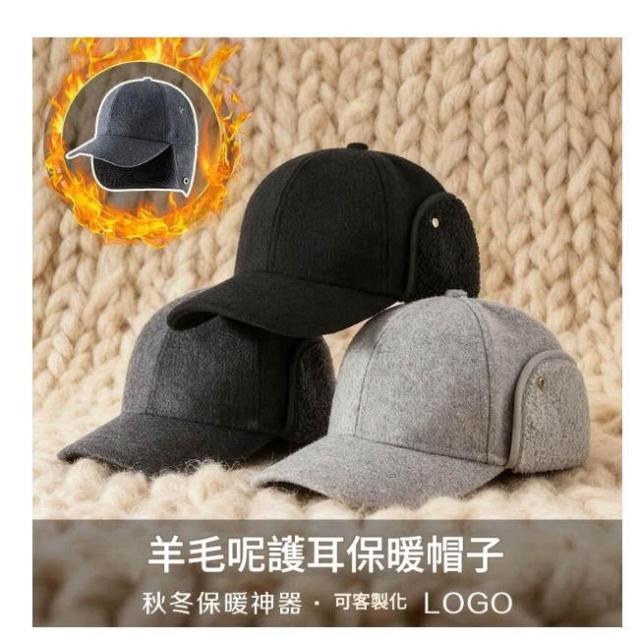 工廠直供 秋冬羊毛呢加絨保暖鴨舌帽 中老年男士騎車防寒護耳棒球帽 男女同款羊毛呢保暖帽 騎車專用防風護耳棒球帽 秋冬加厚