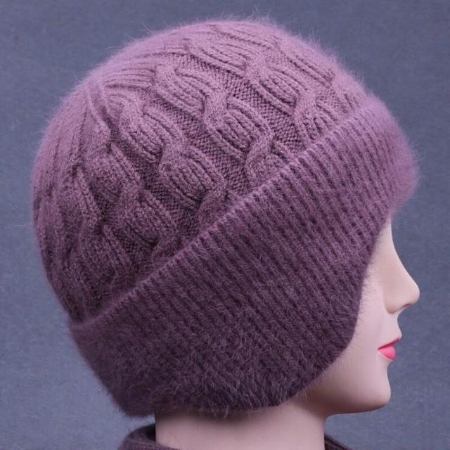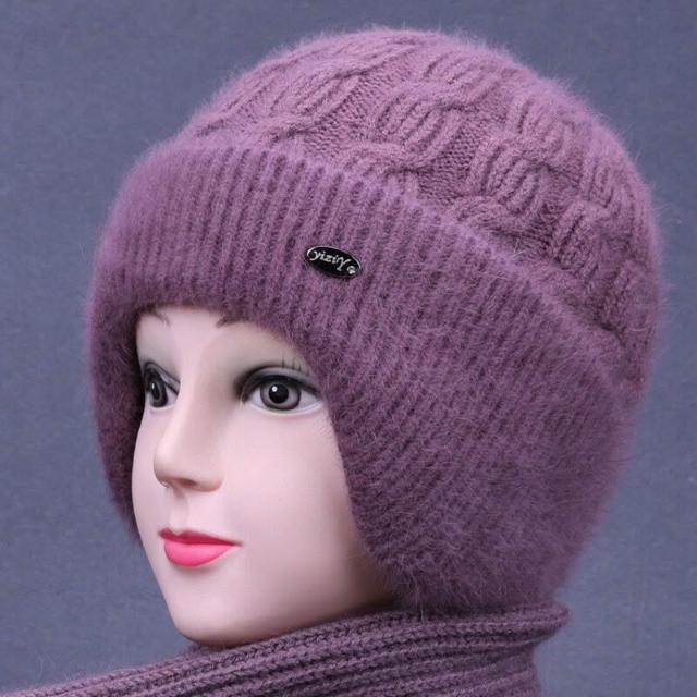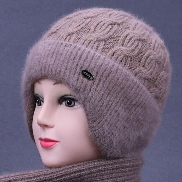 工廠直供 冬天中老年人帽子女媽媽兔毛線針織帽奶奶老太太加絨厚護耳保暖帽