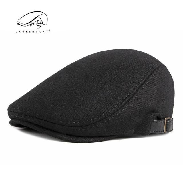 工廠直供 秋冬季男士羊毛呢鴨舌帽 英倫復古中老年貝雷帽 保暖前進帽男款 羊毛呢質感男士貝雷帽 英倫風復古前進帽