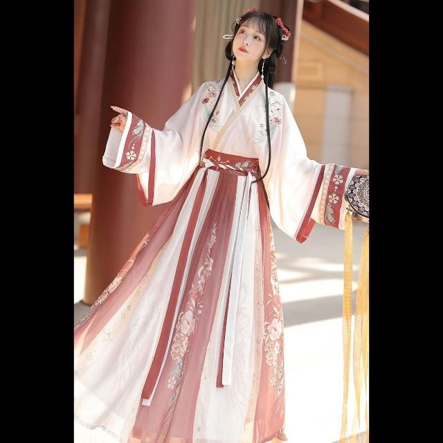 廠家直供 UNMUN2025晉製漢服女中國風印花唐製齊腰襦裙日常古裝單裙子紅色