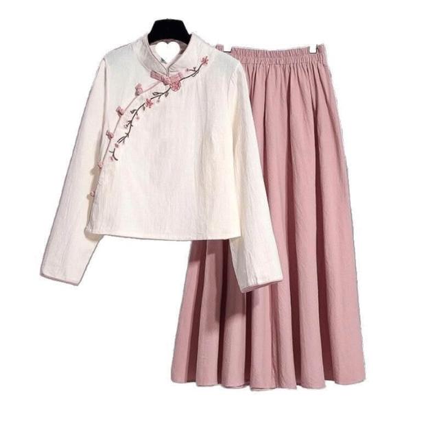 廠家直供 改良漢服女古裝中國風民國風繡花棉麻茶服古風漢元素唐裝復古套裝