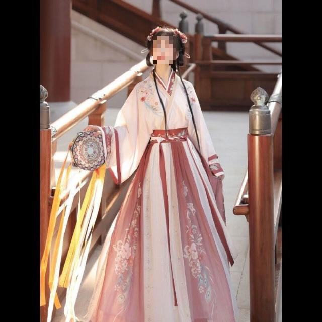 廠家直供 晉製漢服女 中國風印花漢服 唐製齊腰襦裙 日常可穿漢服 古裝漢服套裝 漢元素改良漢服 復古印花襦裙 高腰顯瘦