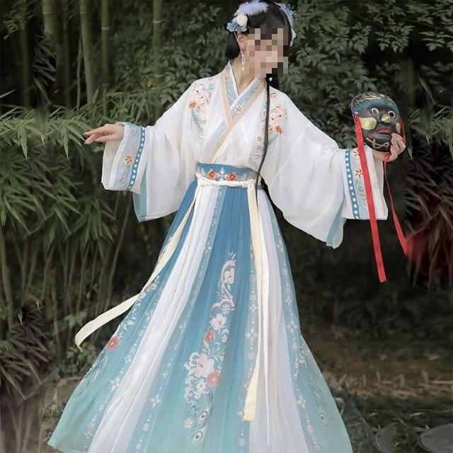 廠家直供 晉製漢服女 中國風印花漢服 唐製齊腰襦裙 日常可穿漢服 古裝漢服套裝 漢元素改良漢服 復古印花襦裙 高腰顯瘦