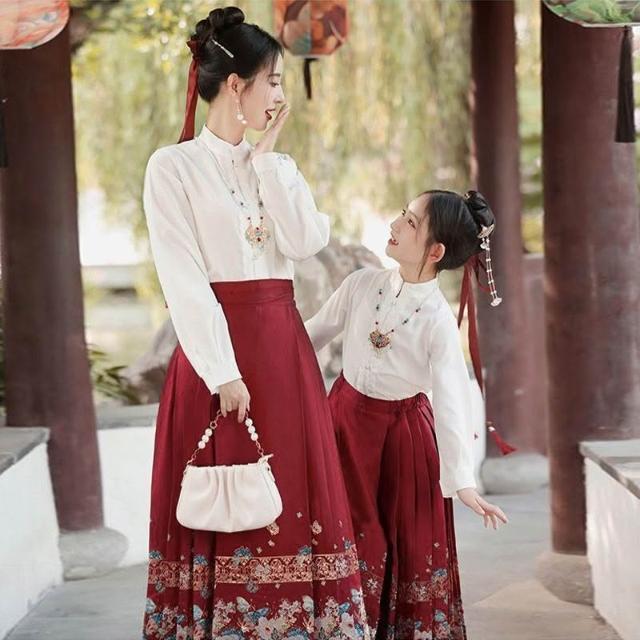 廠家直供 漢服國風女裝童裝兒童親子新中式改良成人半身裙漢元素高檔馬面裙