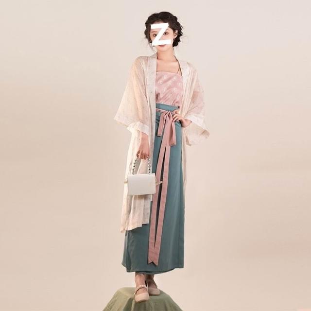 廠家直供 子南記桃溪宋製漢服女長幹寺旋裙吊帶新中式青冷風春夏款