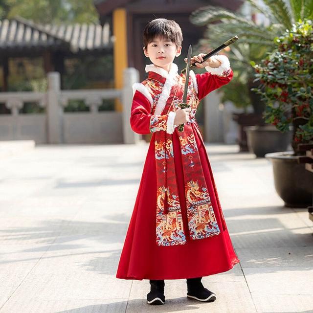 廠家直供 男童漢服秋冬2024新款古裝兒童唐裝小男孩古風帥氣中國風男拜年服