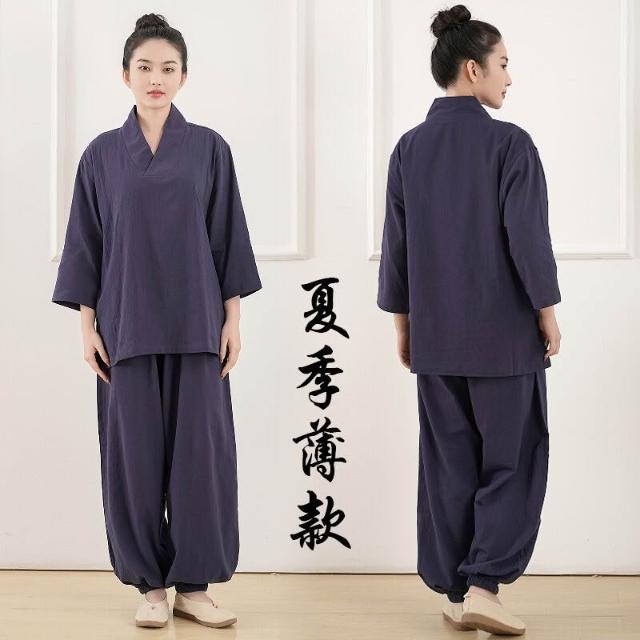 廠家直供 圓弘禅修服男居士服夏季七分袖竹節棉麻禅意漢服瑜伽打坐服套裝