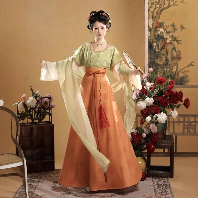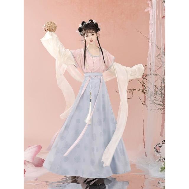 廠家直供 夢華唐原創唐褙子圓領衫漢服女春夏唐製八破齊腰裙套裝