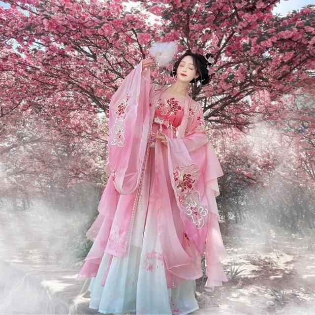 廠家直供 原創诃子裙漢服女2025新款夏季重工刺繡大袖改良仙氣唐製古裝粉色