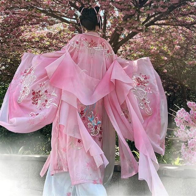 廠家直供 原創诃子裙漢服女2025新款夏季重工刺繡大袖改良仙氣唐製古裝粉色