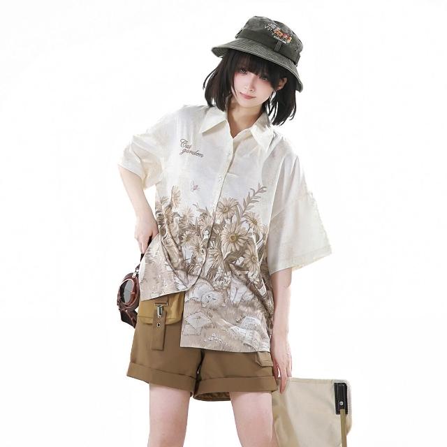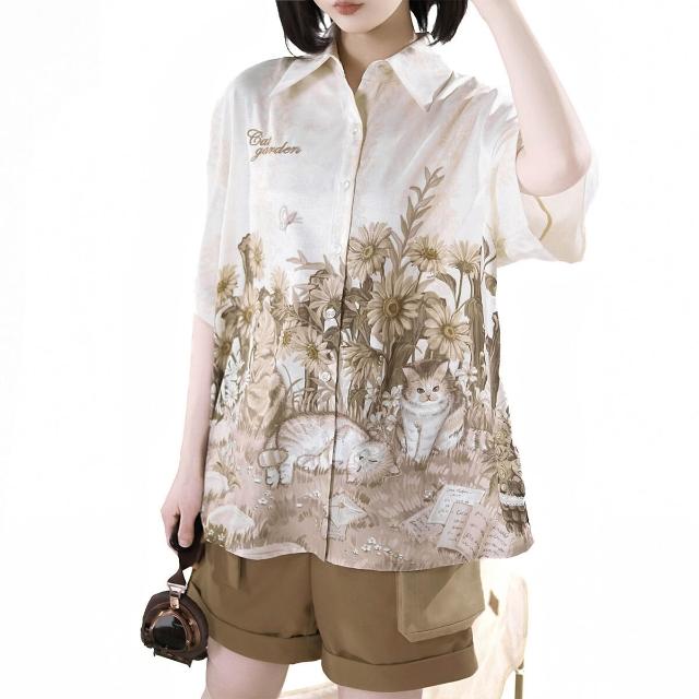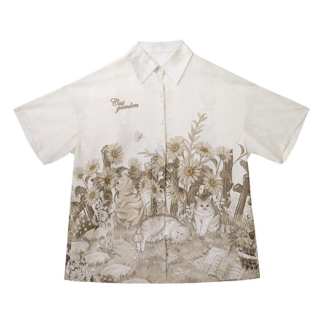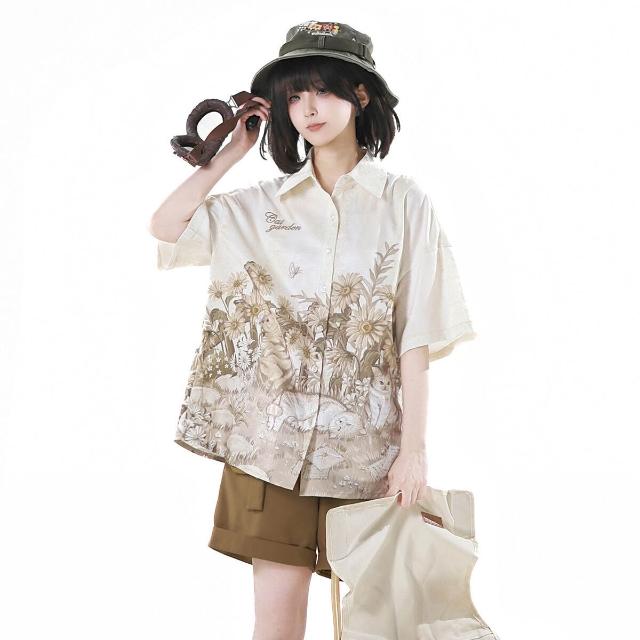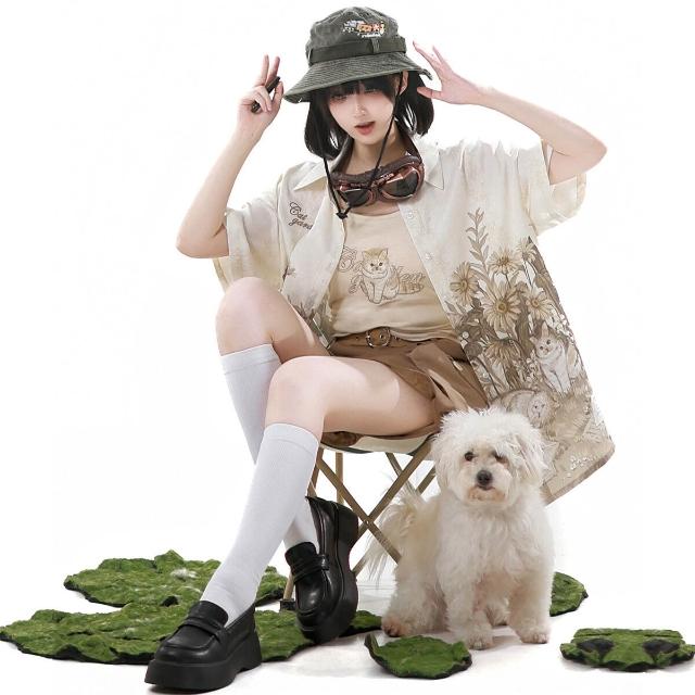 廠家直供 倚夢閣原創花園貓貓漢服女國風漢元素新中式襯衣吊帶短褲套裝9604