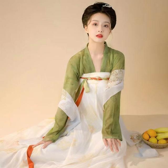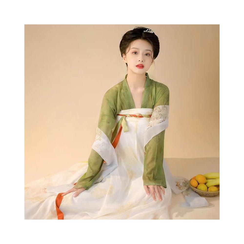 廠家直供 漢服女原創對襟齊胸襦裙印花全套中國風漢元素日常春秋款成人套裝