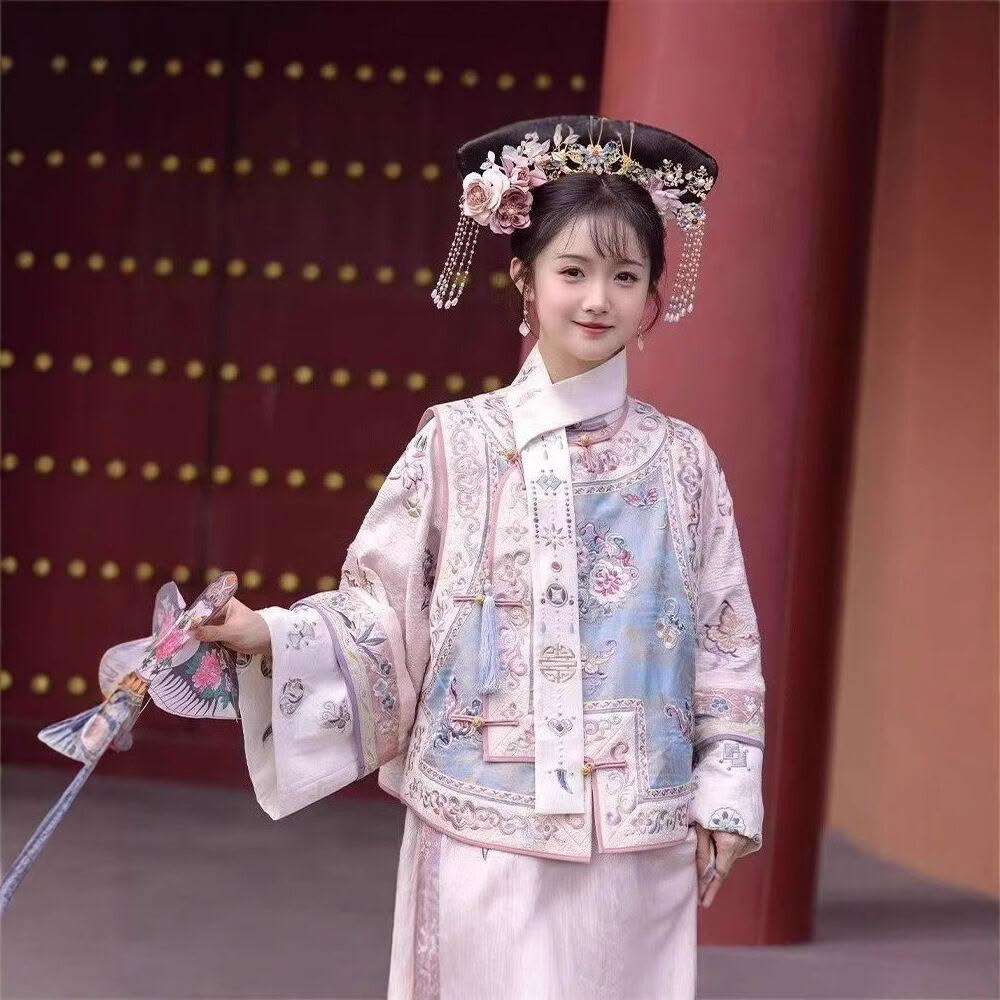 廠家直供 漢服女清代印花古裝清朝延吉公主旗袍宮廷格格服兩件套旅拍服裝女