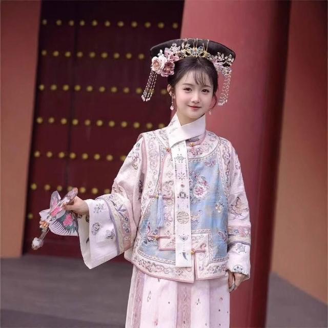 廠家直供 漢服女清代印花古裝清朝延吉公主旗袍宮廷格格服兩件套旅拍服裝女