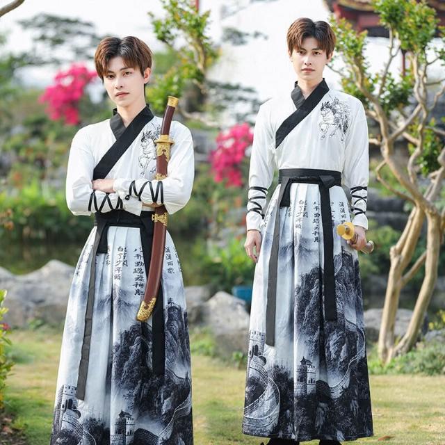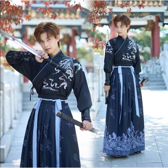 廠家直供 漢服男古風武俠劍客男士大碼學生班服套裝中國風公子春秋古裝
