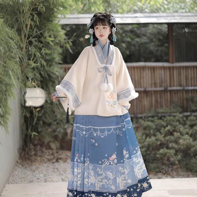 廠家直供 2024新款原創漢服女古風冬季加絨加厚明製短襖馬面裙中國風套裝