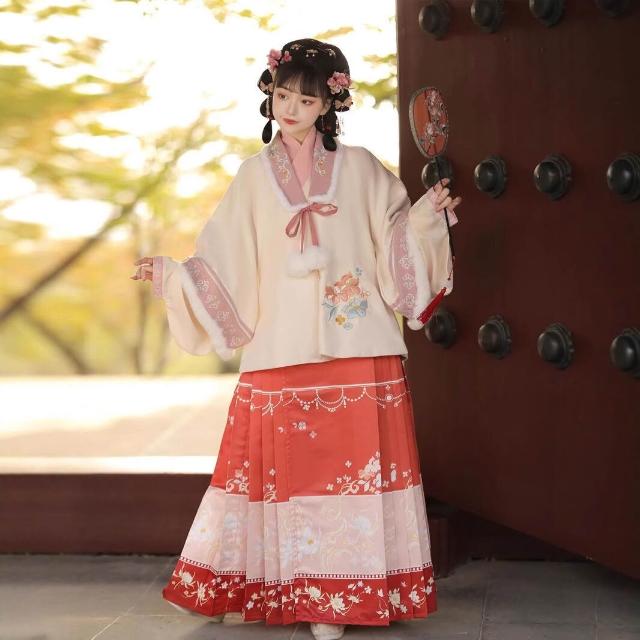 廠家直供 2024新款原創漢服女古風冬季加絨加厚明製短襖馬面裙中國風套裝