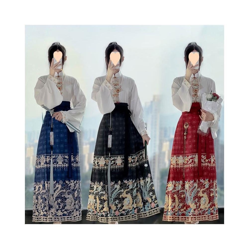 廠家直供 明製漢服女紅色馬面裙套裝敬酒服上衣國風成人款古裝改良日常穿搭