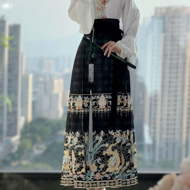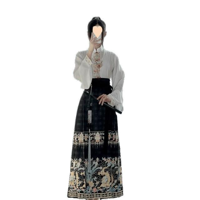 廠家直供 明製漢服女紅色馬面裙套裝 成人款敬酒服國風上衣 改良古裝日常穿搭套 紅色顯氣質馬面裙套裝 女士結婚敬酒服漢服套