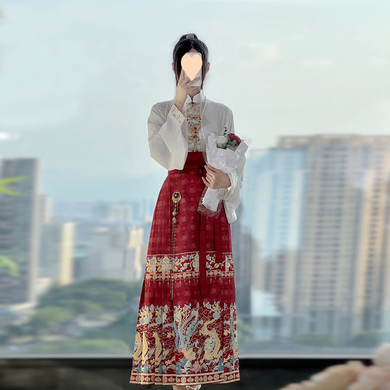 廠家直供 明製漢服女紅色馬面裙套裝敬酒服上衣國風成人款古裝改良日常穿搭