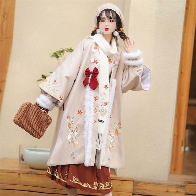 廠家直供 宋製漢服女冬季漢元素套裝楓花雪兔長褙子日常馬面裙拜年服