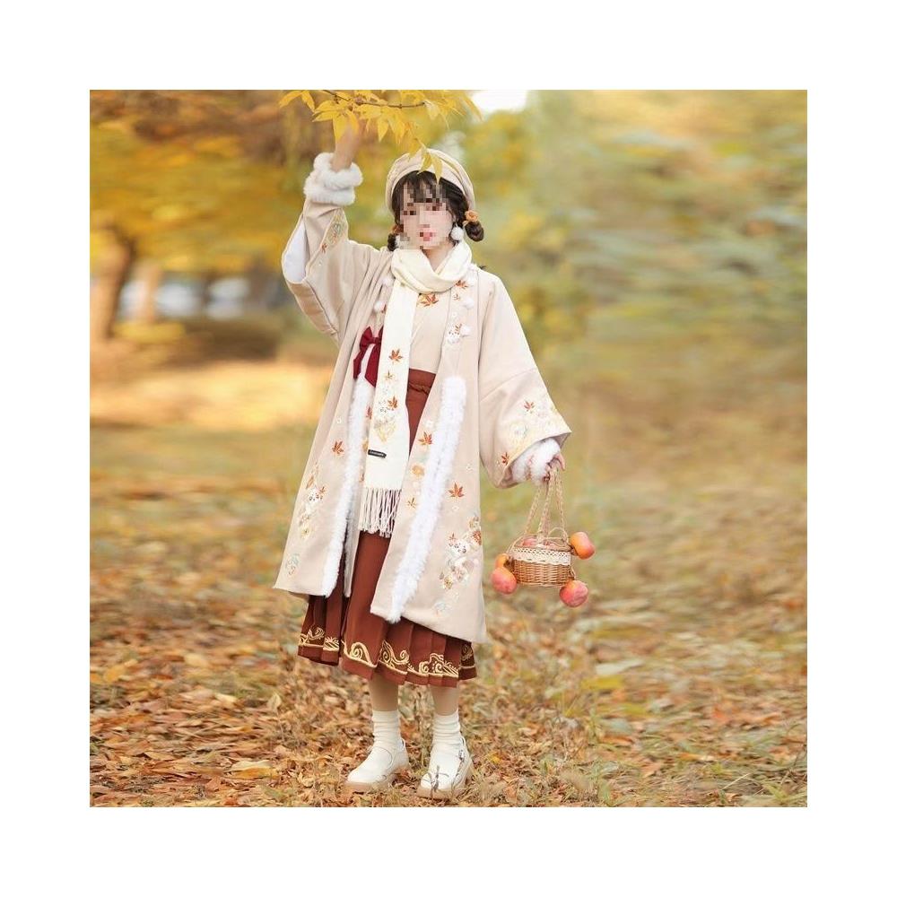 廠家直供 宋製漢服女冬季漢元素套裝楓花雪兔長褙子日常馬面裙拜年服