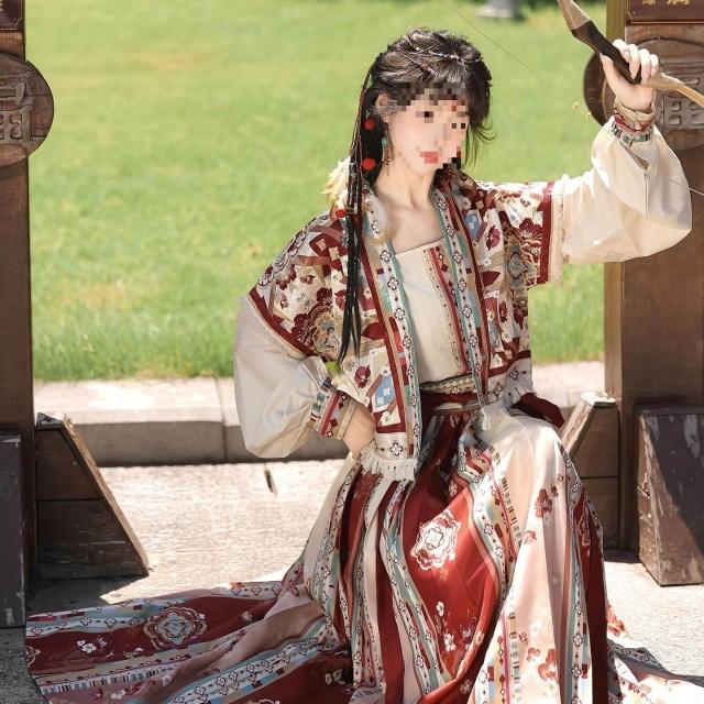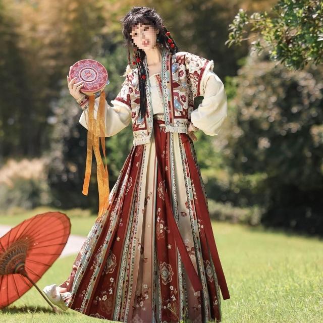 廠家直供 漢裳原創唐製漢服女沙海瑤對襟唐褙子套頭圓領衫齊腰褶裙秋冬