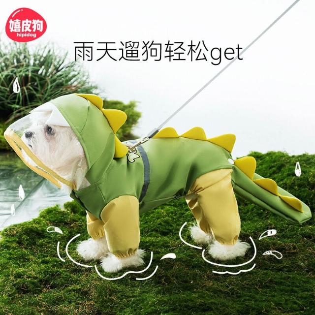 廠家直供 狗狗雨天四腳防水立體恐龍包尾巴狗泰迪雨披中大型犬金毛寵物雨衣