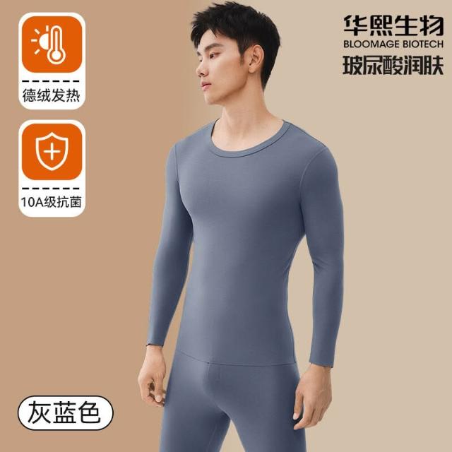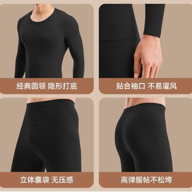 廠家直發 80蘭精莫代爾保暖內衣男薄款圓領修身男士秋衣秋褲套裝無痕保暖衣