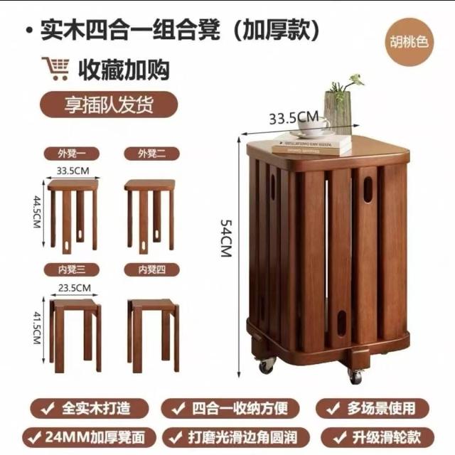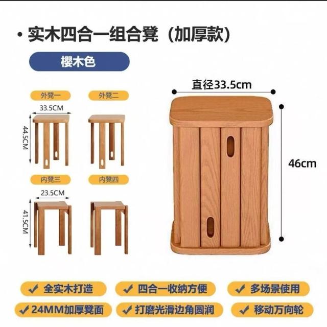 廠家直發 實木凳子可疊放家用板凳收納組合疊疊凳餐廳小凳子客人備用茶幾凳